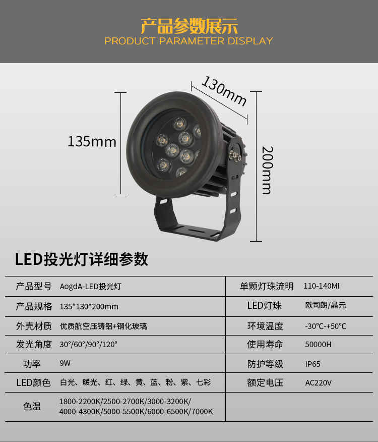 產(chǎn)品品名:新款LED投光燈;聚光投光燈